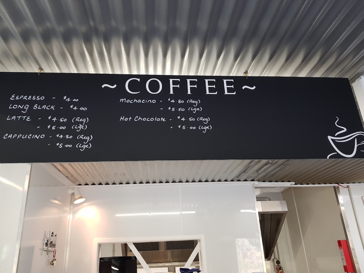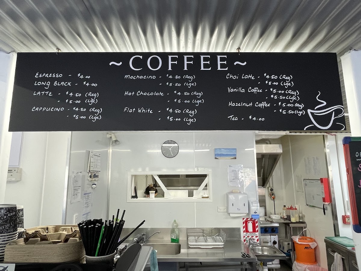 The menu is organized to cater to quick orders and casual dining, making it suitable for light meals, lunch breaks, or a snack. While detailed categories are not provided, the available offerings suggest a focus on takeaway-friendly seafood and sides, alongside typical cafe beverages.